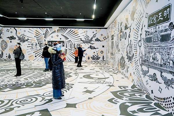 在“数字档案”的基础上,本次展览的“隰州胜刹”篇章,通过大雄宝殿悬塑全景动态灯箱安装、大雄宝殿建筑收复模子等接济安装,展现小西天建筑结构之精妙与悬塑艺术之精绝;在“西天圣境”篇章,有1∶1高保真3D打印收复中枢佛龛,有触摸屏可以让不雅众完成对悬塑的拆解学习,还搭配独有的光影展出了掉落的悬塑部件。