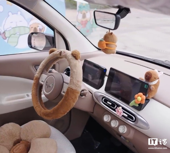 视频中,这款卡皮巴拉小黄豚联名新车,遴荐“含笑”前脸搭配灵动的“菱之翼”LED灯组和“紫荆花”13寸轮毂,一共三款幻彩高定车色:膨膨蓝、泡泡绿、甜甜咖。内饰遴荐全新“焦糖奶油”配色,以淡淡的巧克力棕色为主色,搭配奶酪白色进行点缀。
