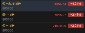 12月10日音讯,好意思股周一推崇向下,大市连升多日后由高位回落,三大指数均录得跌幅收市。好意思元反覆靠稳,好意思国十年期债息回升至4.19厘水平,金价推崇向好,油价走势亦受地缘政局音讯相沿。本日港股三大指数集体高开,恒生指数涨3.21%,报21070.05点,恒生科指涨4.24%,国企指数涨3.46%。盘面上,科网股普涨,好意思团、京东涨约6%,网易、阿里巴巴涨超5%;内房股大幅高开,融创中国涨超13%;中资券商股全线飞腾,申万宏源涨超6%;汽车股集体强势,蔚来涨超6%。