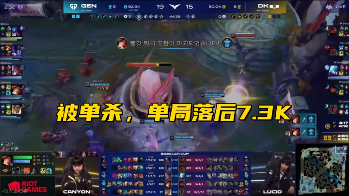 DK下路开局打出线杀,随后中路就传来“喜信”,许哥被大超对位单杀,刚回到线杀,三叔又合手了一波,6分钟许哥0-2开局,经济过时1.3K,不外DK坎坷路上风很大,军队东说念主头一直擢升,但大超兔子太肥了,团战献媚操作输出拉满,DK被打得节节溃退,临了DK中路,过时7.2K输掉比赛。