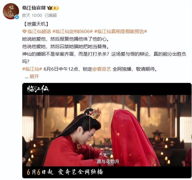 和其他仙侠剧不同的是,此次似乎是主打一个分手仙侠,剧中主角履历了三结三离。