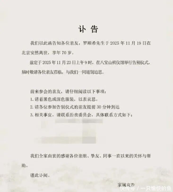 就在流量不断发酵的时候,一个讣告截屏出现,径直压住整个谈论。