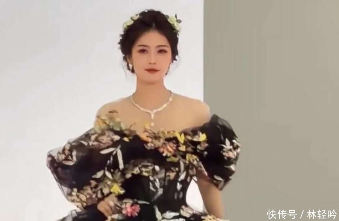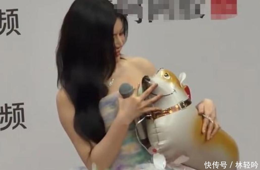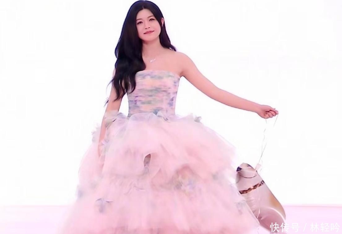 她身穿一袭渐变色蓬松裙装,形似童话中的公主战胜,手中还拎着一只小狗造型的气球,激勉网友热议。
