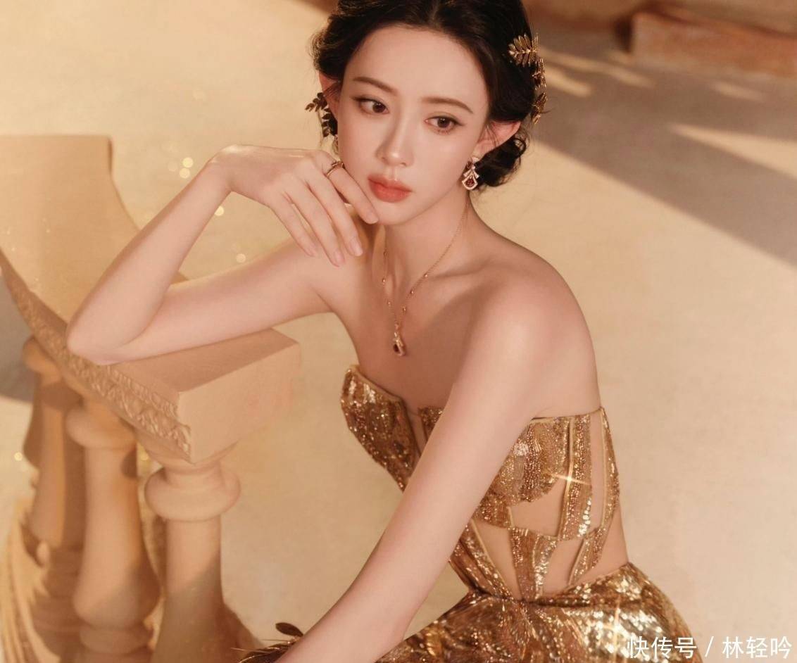 首套金色叶片状战胜贴身剪裁,搭配熠熠生辉的珠宝首饰,尽显奢隆盛妇气质,