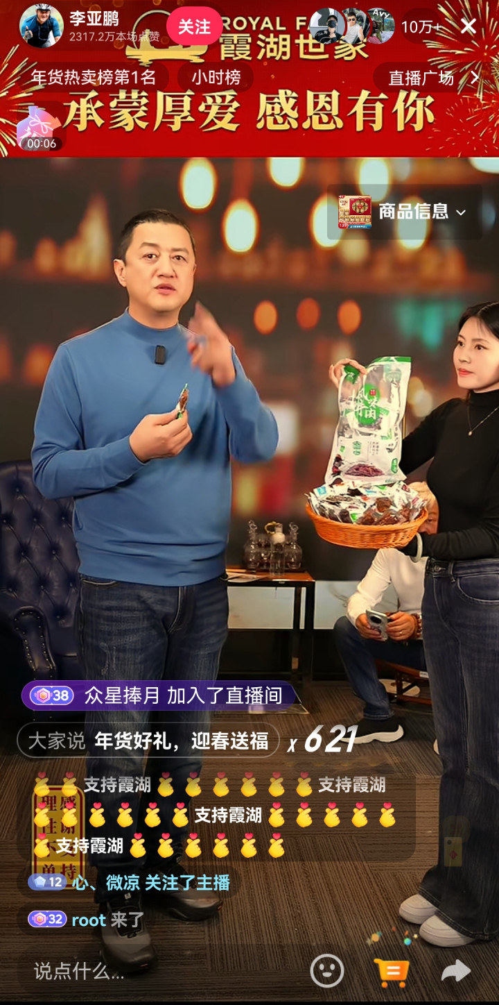 不得不说李亚鹏是个懂得感德的东说念主,濒临当初主动伸出扶助捐钱匡助我方度过难关的爱心企业,李亚鹏技艺挂在心上,这场特殊加播的直播专场,有温馨,有爱心,更有宏大网友的饶恕,直播间几十万东说念主同期在线,直播带货跃居年货热卖榜第别称,更是李亚鹏饶恕作念慈善的诚笃答谢。