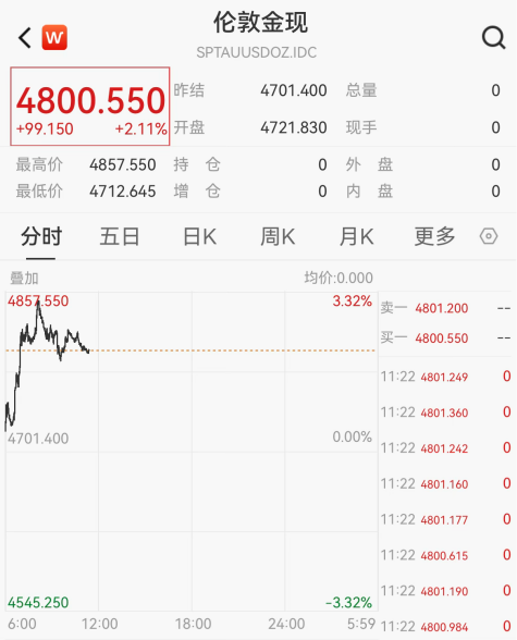 杀青发稿,现货黄金升破4800好意思元/盎司。