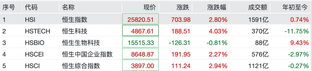 港股市集涨跌不一,恒生生物科技指数下落。杀青发稿,恒生指数涨2.8%,恒生科技指数涨4.03%,恒生生物科技指数跌0.81%。个股方面,华虹半导体大涨13%,中芯国外、好意思团涨超8%,腾讯控股涨2.6%,阿里巴巴涨3.46%,小米集团涨5.5%。