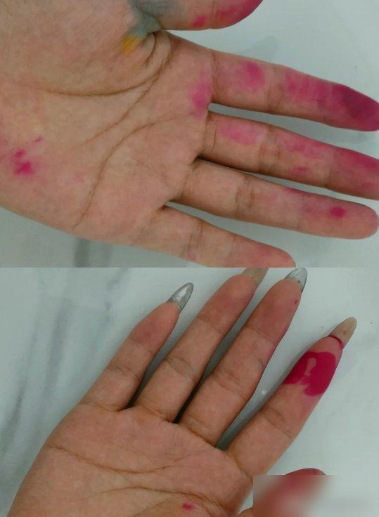 昔日用强力洁厕灵,倒的时分没戴手套,手遭遇瓶口的残留液,其时合计凉丝丝的,过了半小时手运转发红,涂护手霜齐刺痛。