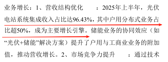 在营收结构上,2025年上半年,光伏电站系统集成收入占比达96.43%,其中户用散播式业务占比超50%,成为主要增长引擎。