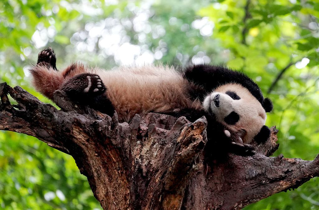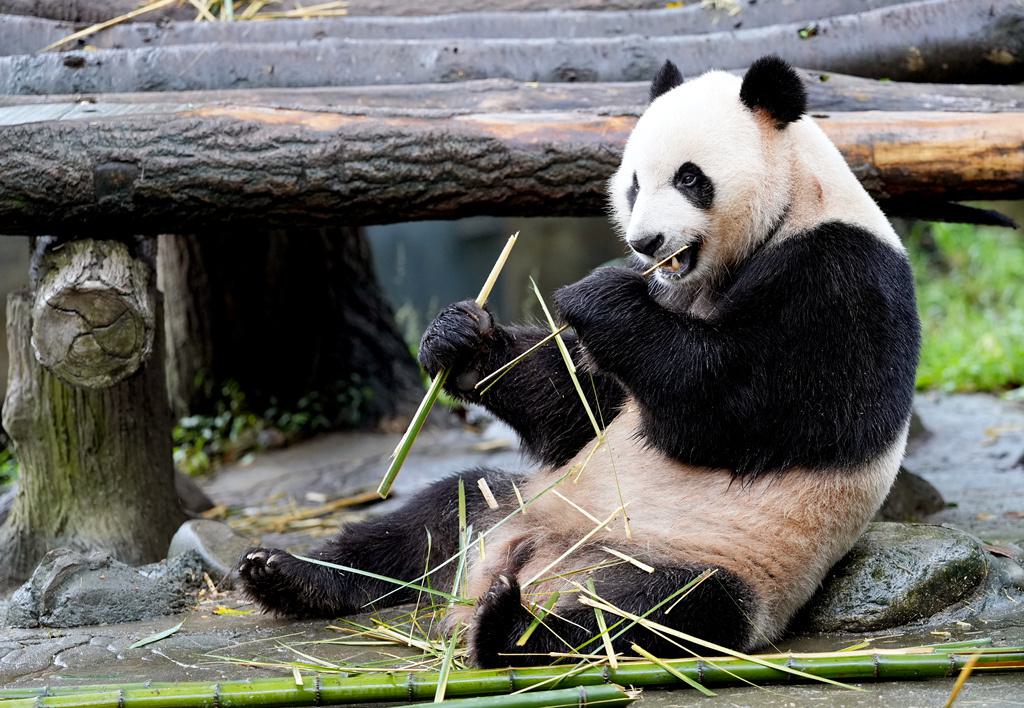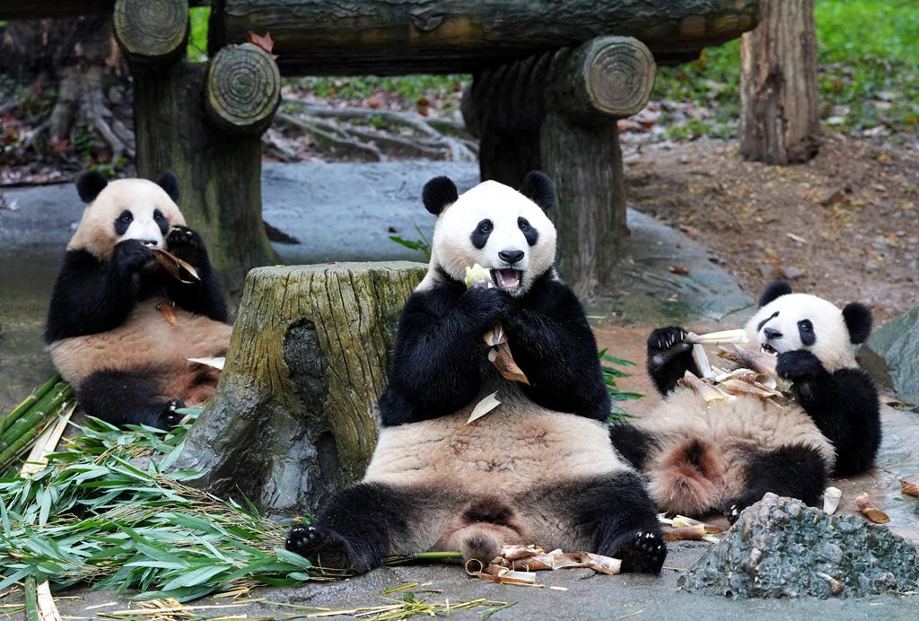 国庆假期第七天,稠密市民、搭客来到中国大熊猫保护计议中心王人江堰基地参不雅。(视觉中国)