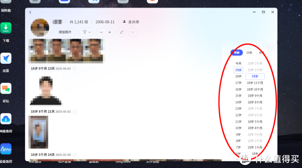在宝宝相册的右边,有一个不错按年龄搜索的技巧线,不但有着具体的日历,更有着多大年龄的标注,颠倒贴合东说念主们的使用民俗。