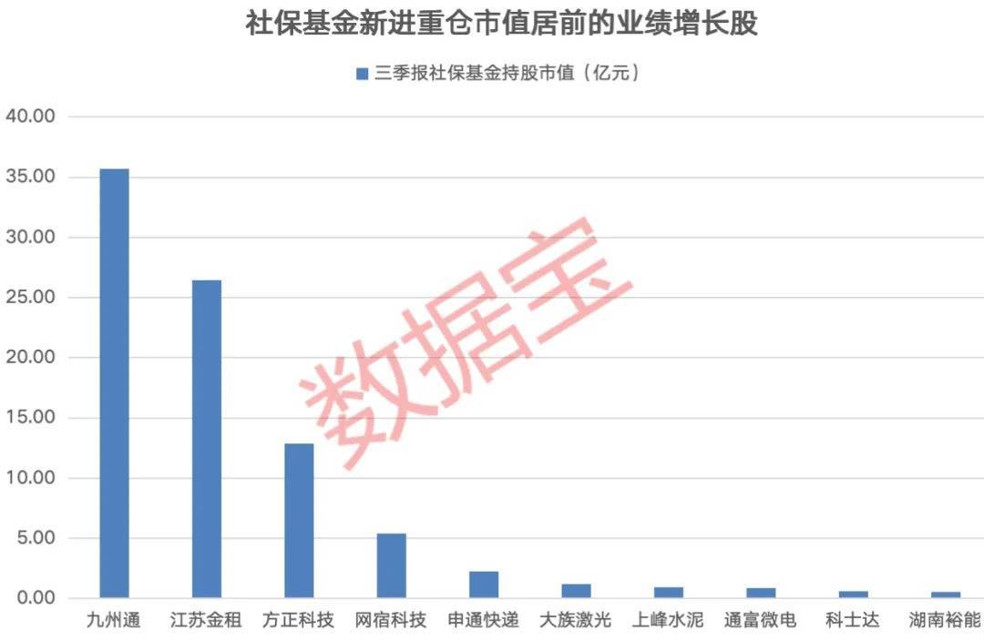 部分第三季度同比、环比双增长股赢得社保基金的醉心,数据泄漏,上述个股中,73股赢得社保基金重仓,其中23股为社保基金新进重仓,25股赢得社保基金增执。